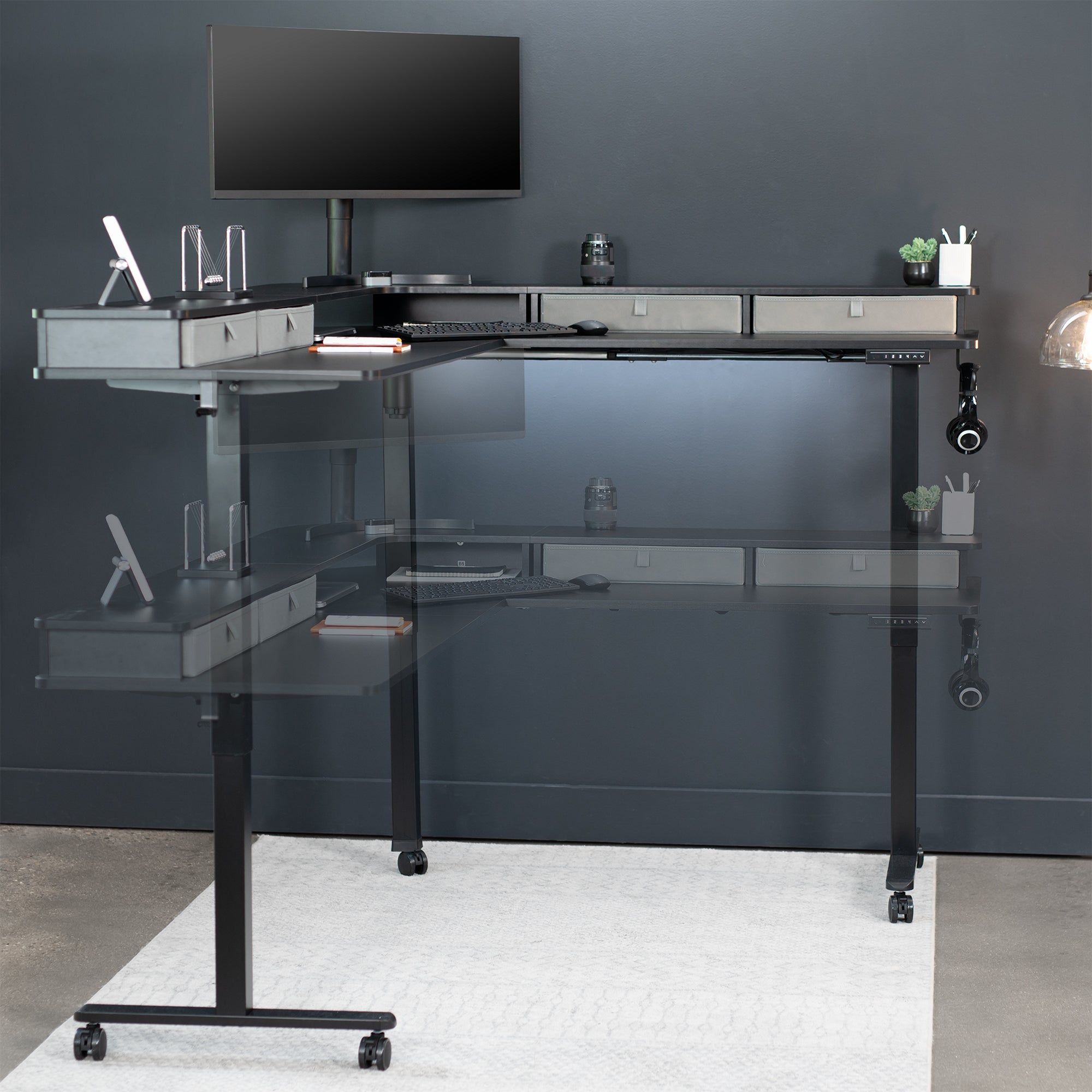 E3CV Series - Two Tier Corner Electric Desk with Storage