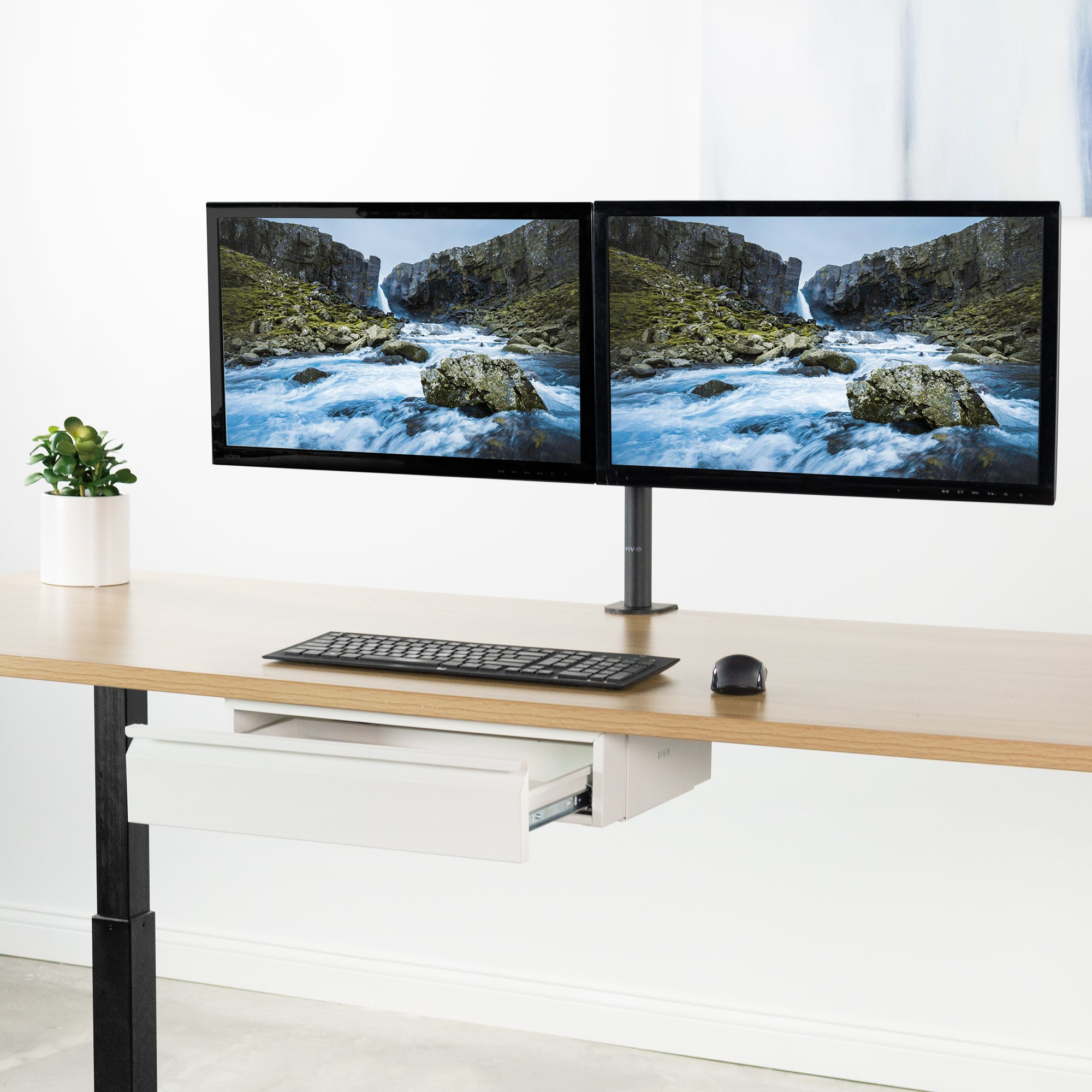 Securely mount ultrawide screens with clamp-on and grommet style monitor mounts.